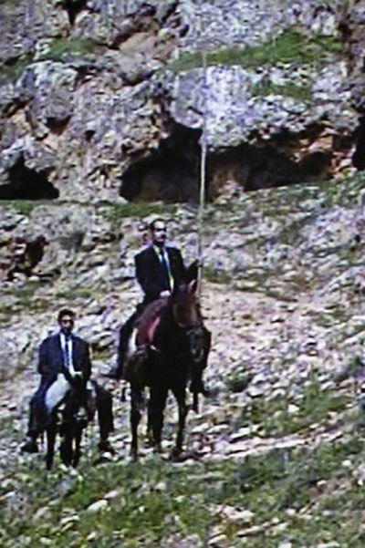 The video “Road to Tate Modern” tells the story of the artists’ efforts to reach that art museum in London. Laden with ironic references to Miguel de Cervantes’s classic novel “Don Quixote” (1605/15), it shows one of the characters riding a horse and the other a donkey as they set out from the mountains of Diyarbakır in pursuit of their “impossible dream”.
