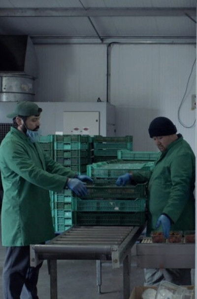 Filmed in Angus, Scotland, Soft Fruit follows migrant seasonal workers on an industrial berry farm as they pick, prepare and transport crops. Candid conversations and scenes of rebellious, collective gathering appear alongside observational footage in shifting visual formats – from high-definition video to 16mm, and CGI inspired by medieval Islamic cosmography – building a layered sense of time and place.