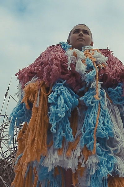 A L G I A is a visual and kinetic representation of memory. Artist Francesca Chudnoff has sewn personal history into the suit she wears in this video with multiple layers of material that add weight and anomalous forms meant to conceal her body while also amplifying her size. The piece poses several questions: What does it mean to be seen? What do we choose to withhold? And what realities do we fabricate in order to hide?